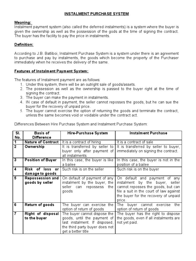 Difference Between Hire Purchase And Installment System Assignment Point