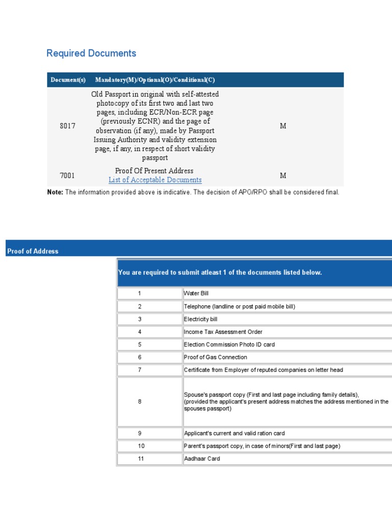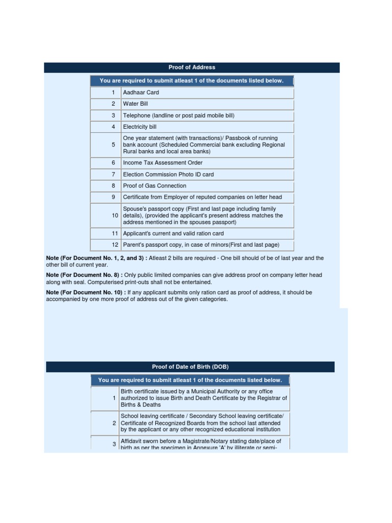Accepted Documents For Current Address Proof Driving License Indian Passport Ration Card Income Tax Assessment Order Rent Agreement Water Bill Telephone Bill Bank Kisan Post Office Passbook Gas Connection Bill Electricity Bill Etc