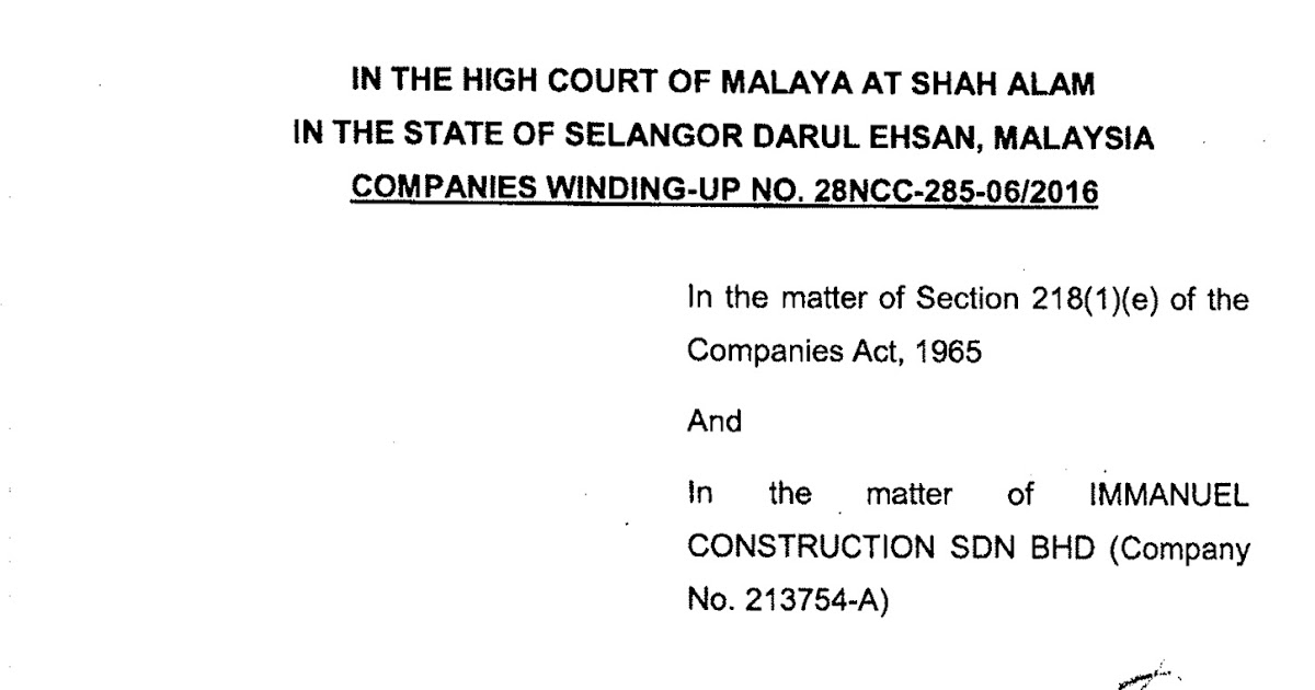 Leghisgeosciads Blog Malaysia Grounds Of Judgment Shah Alam High Court Companies Winding Up Petition No 28ncc 285 06 2016 Trip Guard Sdn Bhd V Immanuel Construction Sdn Bhd