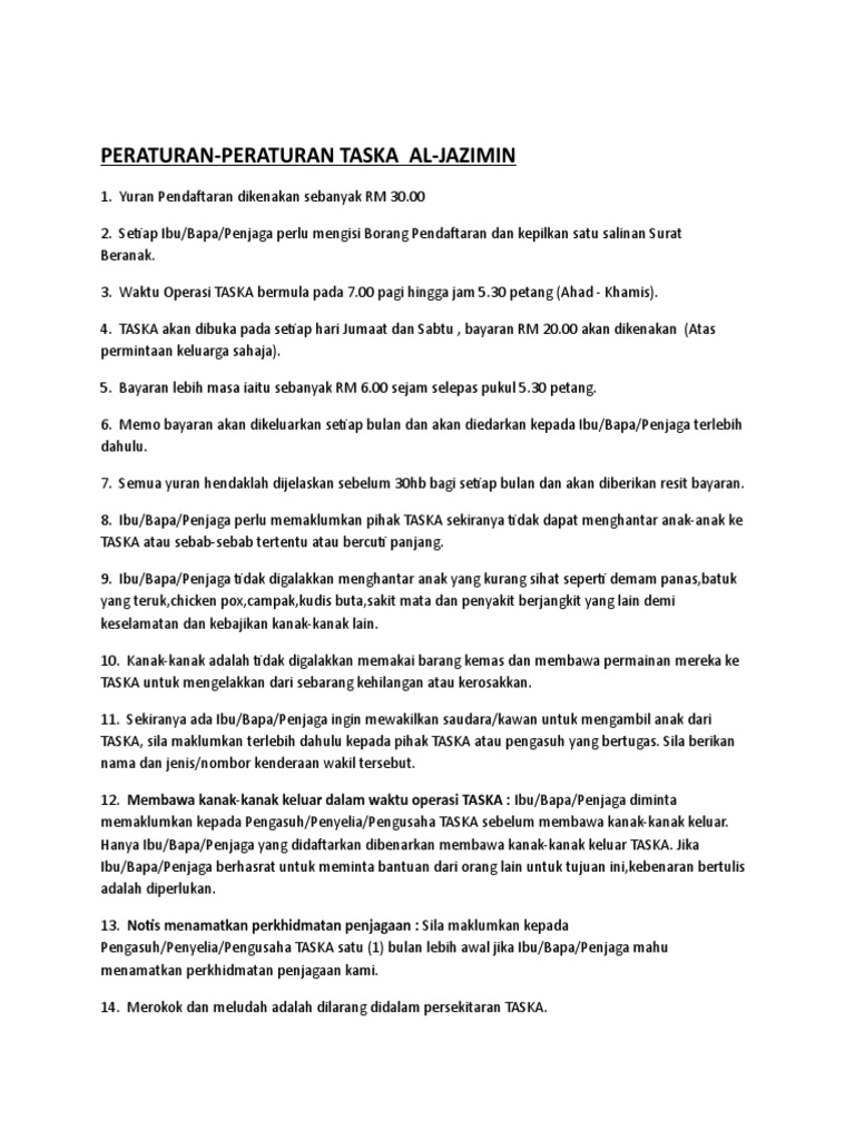 Peraturan Peraturan Taska Al Jazimin